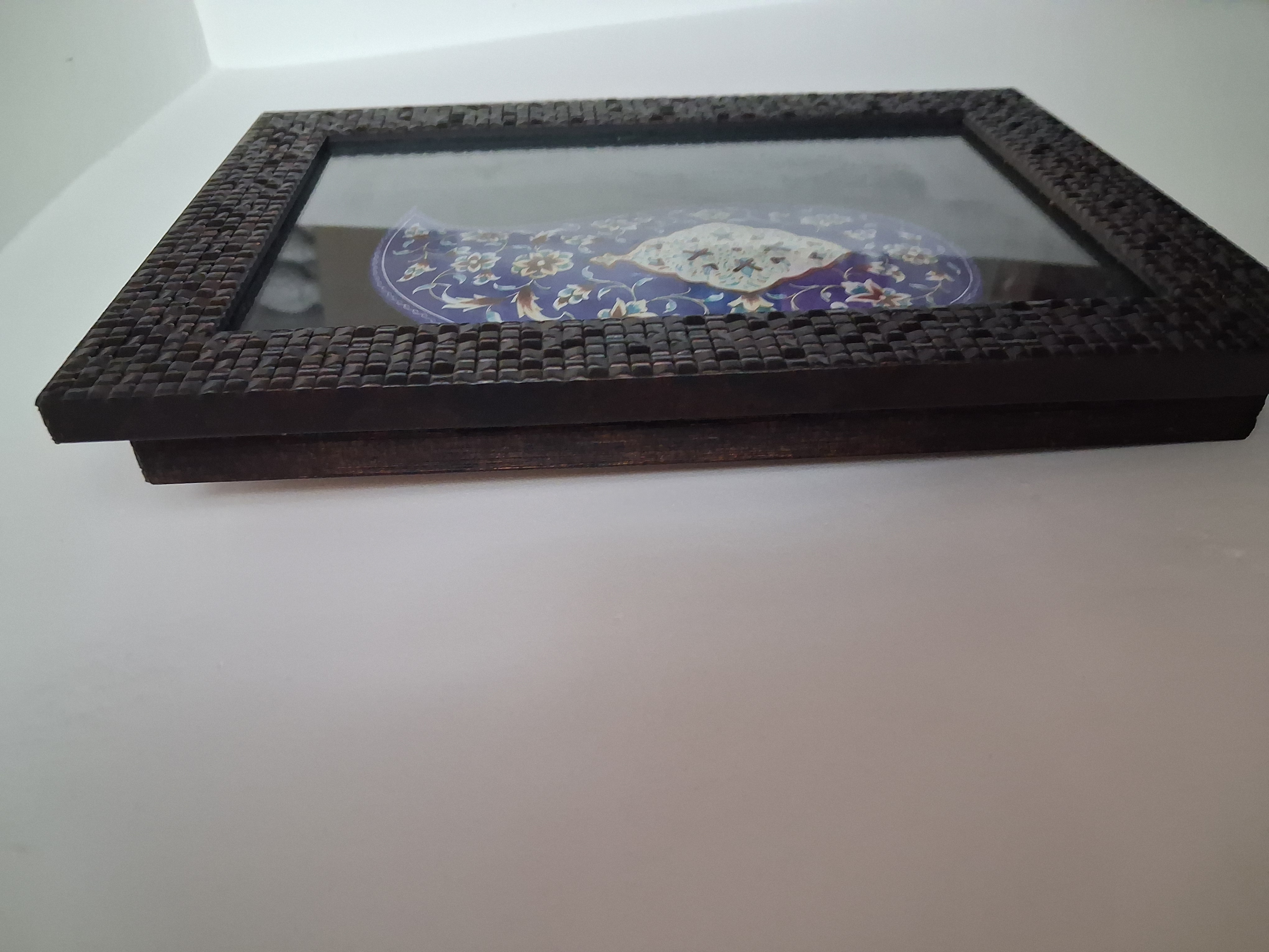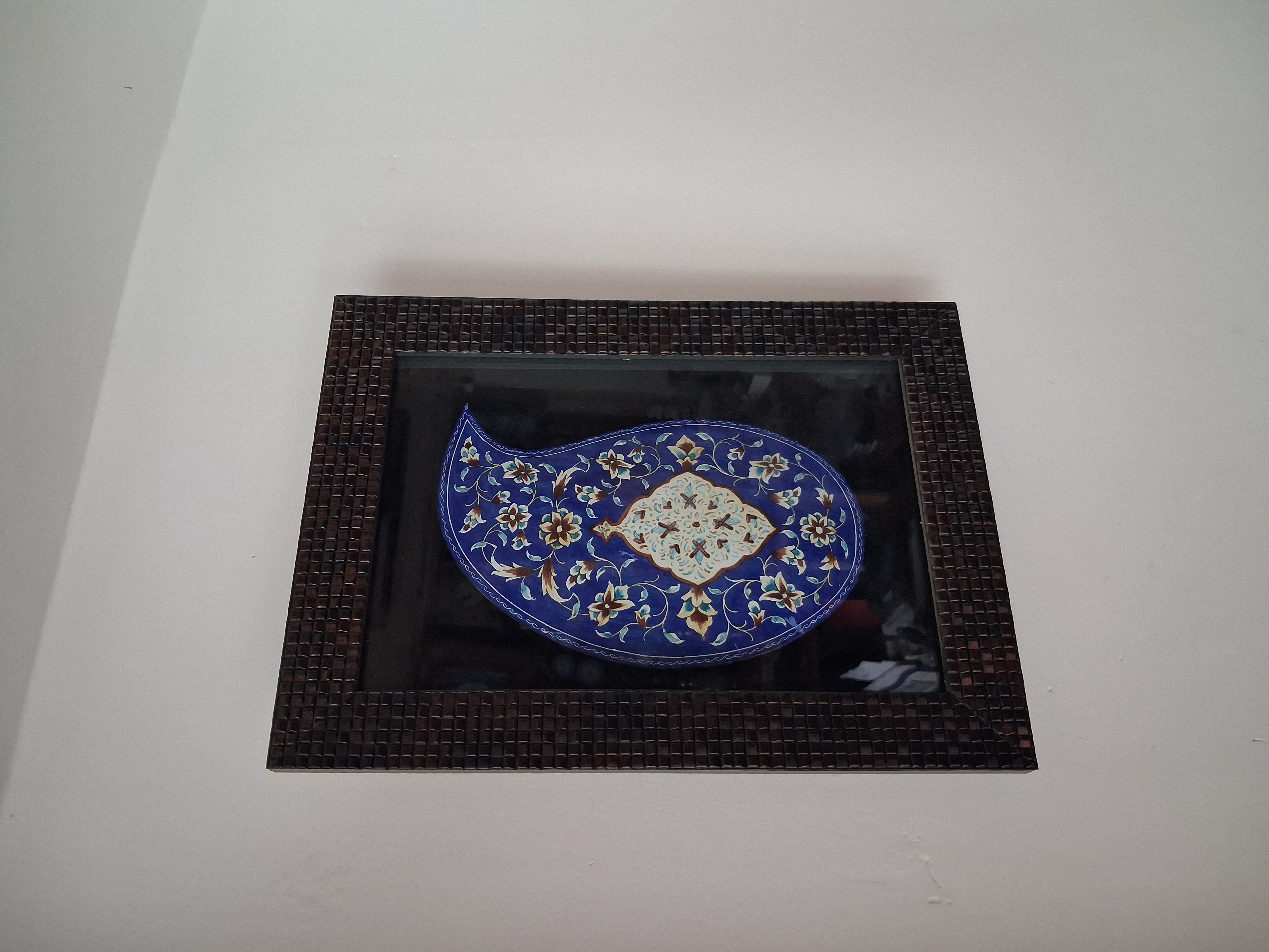 دستهبندی: میناکاریارتفاع بته: ۱۹سانتعرض بته: ۱۲سانترنگ: ابی سیر و قهوه ای و گل ماش و فیروزهابعاد قاب: ۳۰در۲۲سانت